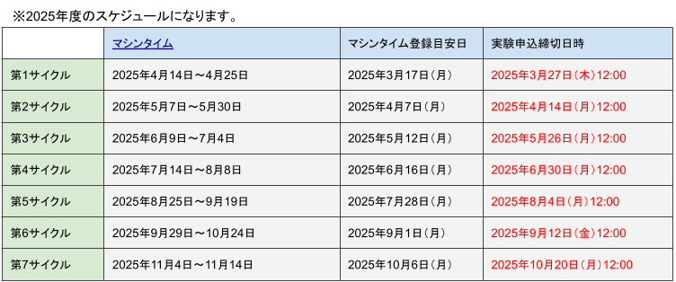 装置責任者がマシンタイム登録後、当該サイクルで実施する課題の研究代表者宛に、実験申込依頼のメールが通知されます。